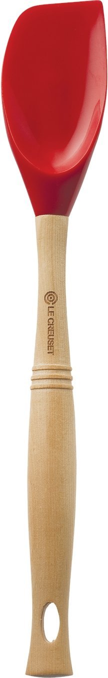 A 'Spoonula' is half spoon and half spatula, and this versatile style spatula is great for mixing, folding, serving and scraping. It's flexible for scraping and serving, but curved for mixing and folding.This mini spatula is designed specifically for scraping jars so you can easily spread jams or jellies, peanut butter, mayonnaise and other condiments.the Le Creuset Revolution Silicone Left Handed Saute Spoon, Cerise (Cherry Red) The small spatula fits easily into the jar to scoop it out and works wonderfully for spreading too. Great for scooping out every last drop of delicious jam, jelly and peanut butter.The lifted edges of the spoonula allow you to easily scrape the sides of your mixing bowl and scoop batter into cupcake pans or dollop icing onto your cake for frosting.All of the Wilton silicone spatulas are high-heat resistant, you can use them for making light and fluffy scrambled eggs because hey won't melt or scrape the pan.- A good assistant for whisking eggs, icing sugar mixture and melted chocolate fresh cream enable your household more easier and effective.- From beating a single egg to mixing a cake batter the sturdy and efficient classic whisk has multiple wires for adding volume and quickly smoothing lumps from mixtures.- This stainless steel whisk set can be very handy in any kitchen. Set includes 3 different sizes so you can pick the right whisk for the right task.- Hanging loop at the end of the handle makes it storage easily.Le Creuset Revolution Silicone Left Handed Saute Spoon, Cerise (Cherry Red) is best for youThe Le Creuset Revolution utensil range represents the next generation of functional innovations in the kitchen, with all-new advances for superior comfort and control. Developed with chefs and culinary enthusiasts in mind, each utensil features a task-defined blade made from premium silicone, as well as a carefully crafted wood handle engineered to improve grip for a variety of kitchen tasks. (U.S. Patent No. D606,806; U.S. Patent No. D628,448; other patents pending). The left-handed sauté spoon features a blade specifically designed for lifting, stirring and moving ingredients while sautéing.