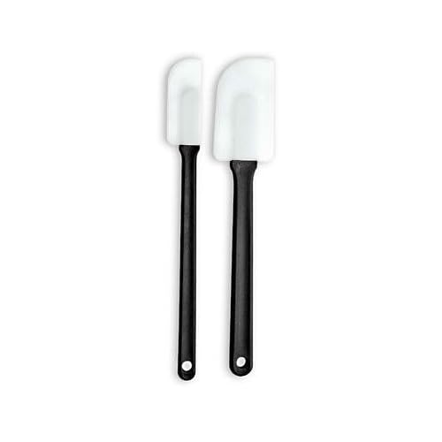 A 'Spoonula' is half spoon and half spatula, and this versatile style spatula is great for mixing, folding, serving and scraping. It's flexible for scraping and serving, but curved for mixing and folding.This mini spatula is designed specifically for scraping jars so you can easily spread jams or jellies, peanut butter, mayonnaise and other condiments.the Sunbeam Silicone Spatula, 2 Piece Set The small spatula fits easily into the jar to scoop it out and works wonderfully for spreading too. Great for scooping out every last drop of delicious jam, jelly and peanut butter.The lifted edges of the spoonula allow you to easily scrape the sides of your mixing bowl and scoop batter into cupcake pans or dollop icing onto your cake for frosting.All of the Wilton silicone spatulas are high-heat resistant, you can use them for making light and fluffy scrambled eggs because hey won't melt or scrape the pan.- A good assistant for whisking eggs, icing sugar mixture and melted chocolate fresh cream enable your household more easier and effective.- From beating a single egg to mixing a cake batter the sturdy and efficient classic whisk has multiple wires for adding volume and quickly smoothing lumps from mixtures.- This stainless steel whisk set can be very handy in any kitchen. Set includes 3 different sizes so you can pick the right whisk for the right task.- Hanging loop at the end of the handle makes it storage easily.Sunbeam Silicone Spatula, 2 Piece Set is best for youBe prepared for anything in the kitchen with this set of two Sunbeam silicone spatulas. They feature silicone heads which are heat resistant up to 400 ° Fahrenheit so you can use them in almost any setting. The flexible heads also enable them to fit in tight spaces and for added convenience they are top rack dishwasher safe. This set is backed by a manufacturer's lifetime warranty.Small -- 10' L x 1' W; Large -- 10' L x 2' W