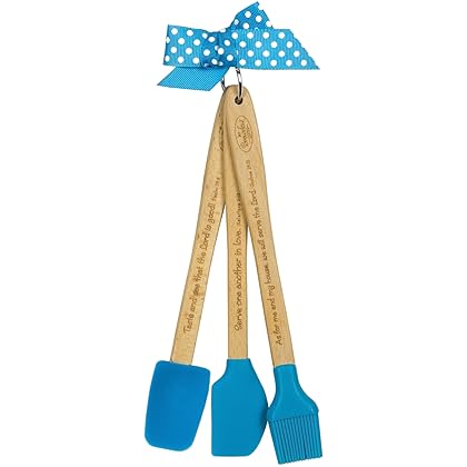 A 'Spoonula' is half spoon and half spatula, and this versatile style spatula is great for mixing, folding, serving and scraping. It's flexible for scraping and serving, but curved for mixing and folding.This mini spatula is designed specifically for scraping jars so you can easily spread jams or jellies, peanut butter, mayonnaise and other condiments.the Brownlow Kitchen Gifts Mini-Tools with Scripture, Blue The small spatula fits easily into the jar to scoop it out and works wonderfully for spreading too. Great for scooping out every last drop of delicious jam, jelly and peanut butter.The lifted edges of the spoonula allow you to easily scrape the sides of your mixing bowl and scoop batter into cupcake pans or dollop icing onto your cake for frosting.All of the Wilton silicone spatulas are high-heat resistant, you can use them for making light and fluffy scrambled eggs because hey won't melt or scrape the pan.- A good assistant for whisking eggs, icing sugar mixture and melted chocolate fresh cream enable your household more easier and effective.- From beating a single egg to mixing a cake batter the sturdy and efficient classic whisk has multiple wires for adding volume and quickly smoothing lumps from mixtures.- This stainless steel whisk set can be very handy in any kitchen. Set includes 3 different sizes so you can pick the right whisk for the right task.- Hanging loop at the end of the handle makes it storage easily.Brownlow Kitchen Gifts Mini-Tools with Scripture, Blue is best for youCooking and baking are more fun when you have the coolest kitchen tools. This set of three mini silicone kitchen tools includes a spatula, spoonula, and pastry brush tied with a color coordinated grosgrain ribbon. Silicone tools are heat resistant to 500 degrees, stain proof and dishwasher safe. They make great bridal shower gifts, housewarming gifts and stocking stuffers, and look great in your kitchen, too. Brownlow Gifts began from a desire to create gifts that would last much longer than flowers and give hope and inspiration long after flowers are gone. Brownlow Gifts has grown into creating inspirational, fashion accessory, paper, and baby gifts along with a selection of giftable kitchen items. The Brownlow Gifts family business continues making products that inspire people and help them connect with the people they love.