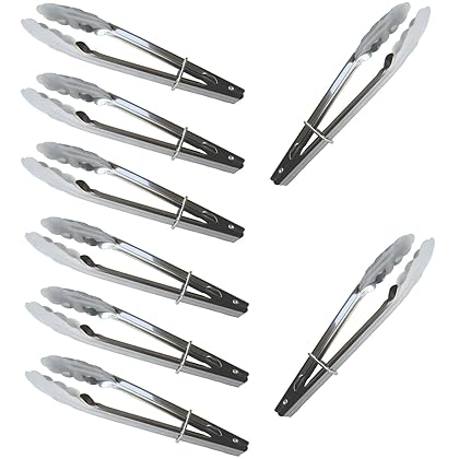 • The Set of 8 Stainless Steel Clam Shell Food Service Tongs with Sliding Rings. Quality Construction, Dishwasher Safe is a