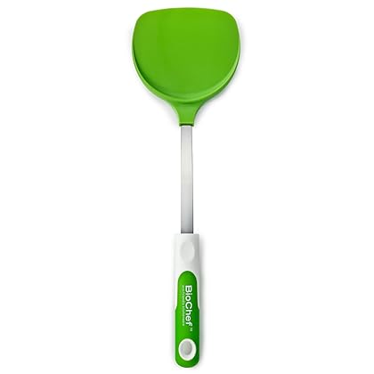 A 'Spoonula' is half spoon and half spatula, and this versatile style spatula is great for mixing, folding, serving and scraping. It's flexible for scraping and serving, but curved for mixing and folding.This mini spatula is designed specifically for scraping jars so you can easily spread jams or jellies, peanut butter, mayonnaise and other condiments.the BioChef Nylon Turner, Green The small spatula fits easily into the jar to scoop it out and works wonderfully for spreading too. Great for scooping out every last drop of delicious jam, jelly and peanut butter.The lifted edges of the spoonula allow you to easily scrape the sides of your mixing bowl and scoop batter into cupcake pans or dollop icing onto your cake for frosting.All of the Wilton silicone spatulas are high-heat resistant, you can use them for making light and fluffy scrambled eggs because hey won't melt or scrape the pan.- A good assistant for whisking eggs, icing sugar mixture and melted chocolate fresh cream enable your household more easier and effective.- From beating a single egg to mixing a cake batter the sturdy and efficient classic whisk has multiple wires for adding volume and quickly smoothing lumps from mixtures.- This stainless steel whisk set can be very handy in any kitchen. Set includes 3 different sizes so you can pick the right whisk for the right task.- Hanging loop at the end of the handle makes it storage easily.BioChef Nylon Turner, Green is best for youColor:Green The BioChef Nylon Turner uses a blend of 70-Percent corn starch with 30-Percent bioplastic, offering a low carbon material that is natural and healthy. The handle is comfortable to hold, and won’t slip out of your hand, with a stainless-steel shaft that adds strength for easy turning. The nylon head is heat-resistant, safe for non-stick cookware, grease resistant and dishwasher safe. Bioplastics are a form of plastics derived from renewable biomass forms such as corn, sugar or even algae. Our bioplastic material is made from a special blend of renewable corn starch and plastic. The corn used in our bioplastic comes from surplus food supplies that are destined for the landfill. BioChef takes this item out of the refuse chain to produce bioplastic. BioChef values the well-being of you and Mother Earth, designing stylish kitchenware out of bioplastics made from a seventy percent natural corn starch blend. But there's more to the story-BioChef's entire production process uses much less fossil fuel than conventional plastic so oil consumption is lower and the environmental impact to our natural resources is reduced. We understand, like you do, that it's time to reduce our dependance on non-renewable resources. By using sustainable, renewable and biodegradable resources such as corn, sugar or algae, BioChef products have less impact on our fragile resources. All BioChef products are produced with bioplastics and are environmentally concious, non-toxic, BPA free and FDA approved.