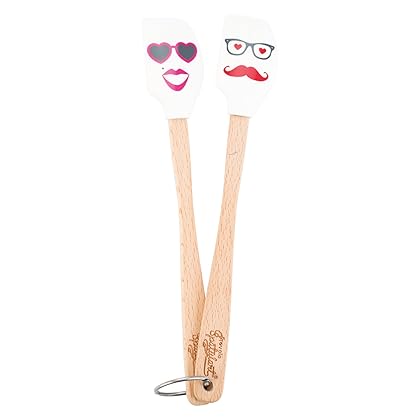 A 'Spoonula' is half spoon and half spatula, and this versatile style spatula is great for mixing, folding, serving and scraping. It's flexible for scraping and serving, but curved for mixing and folding.This mini spatula is designed specifically for scraping jars so you can easily spread jams or jellies, peanut butter, mayonnaise and other condiments.the Tovolo Spatulart Mr. and Mrs. Love Mini Spatulas - Set of 2 The small spatula fits easily into the jar to scoop it out and works wonderfully for spreading too. Great for scooping out every last drop of delicious jam, jelly and peanut butter.The lifted edges of the spoonula allow you to easily scrape the sides of your mixing bowl and scoop batter into cupcake pans or dollop icing onto your cake for frosting.All of the Wilton silicone spatulas are high-heat resistant, you can use them for making light and fluffy scrambled eggs because hey won't melt or scrape the pan.- A good assistant for whisking eggs, icing sugar mixture and melted chocolate fresh cream enable your household more easier and effective.- From beating a single egg to mixing a cake batter the sturdy and efficient classic whisk has multiple wires for adding volume and quickly smoothing lumps from mixtures.- This stainless steel whisk set can be very handy in any kitchen. Set includes 3 different sizes so you can pick the right whisk for the right task.- Hanging loop at the end of the handle makes it storage easily.Tovolo Spatulart Mr. and Mrs. Love Mini Spatulas - Set of 2 is best for youEven kitchen tools can be decorative works of art. Tovolo has incorporated fun designs with fade-resistant colors aimed to last. Whether you're baking during the holidays or flipping eggs, Spatula tools are designed for the smile in mind. The high performance silicone heads and fade-proof, stain-resistant silicone ink makes these mini spatulas a functional work of art! The edges are tapered to a sharp point to scrape the side of the bowl completely clean and the square corner will fit into the tightest spots of any pan and the completely smooth surface allows for even spreading. From head to handle's end the spatulas measures 8'L x 1.7'W x .6'H.