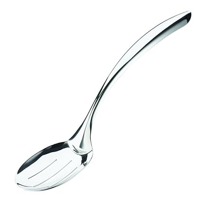 A 'Spoonula' is half spoon and half spatula, and this versatile style spatula is great for mixing, folding, serving and scraping. It's flexible for scraping and serving, but curved for mixing and folding.This mini spatula is designed specifically for scraping jars so you can easily spread jams or jellies, peanut butter, mayonnaise and other condiments.the Browne (573174) 13-1/2" Solid Serving Spoon - Eclipse Collection The small spatula fits easily into the jar to scoop it out and works wonderfully for spreading too. Great for scooping out every last drop of delicious jam, jelly and peanut butter.The lifted edges of the spoonula allow you to easily scrape the sides of your mixing bowl and scoop batter into cupcake pans or dollop icing onto your cake for frosting.All of the Wilton silicone spatulas are high-heat resistant, you can use them for making light and fluffy scrambled eggs because hey won't melt or scrape the pan.- A good assistant for whisking eggs, icing sugar mixture and melted chocolate fresh cream enable your household more easier and effective.- From beating a single egg to mixing a cake batter the sturdy and efficient classic whisk has multiple wires for adding volume and quickly smoothing lumps from mixtures.- This stainless steel whisk set can be very handy in any kitchen. Set includes 3 different sizes so you can pick the right whisk for the right task.- Hanging loop at the end of the handle makes it storage easily.Browne (573174) 13-1/2" Solid Serving Spoon - Eclipse Collection is best for youThis slotted serving spoon is made of 18/8 stainless steel material. This serving spoon has extra-long ergonomical stay-cool tapered hollow handle which provides comfortable grip. This unique arc handle 'easy pick up' design reduces slippage in servingware and provides ease of handling. Available in mirror finish. Measures 13-1/2-inch length.