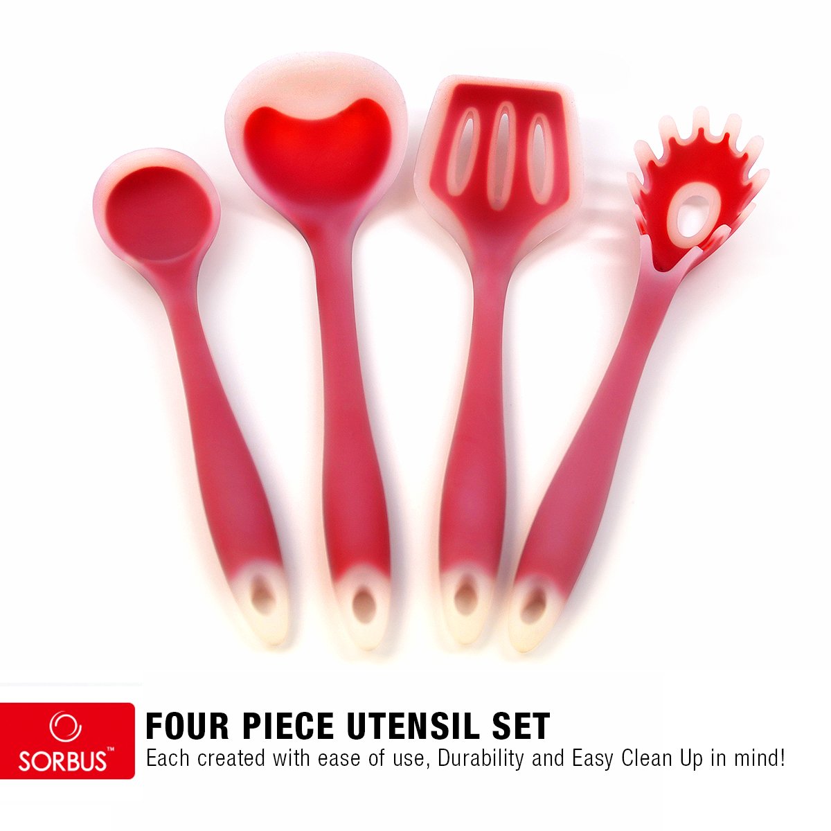 • The Sorbus 4 Piece Silicone-Frosting Kitchen Utensil Set– Ladle, Spatula Turner, Mixing Spoon, and Spatula Spoon is a