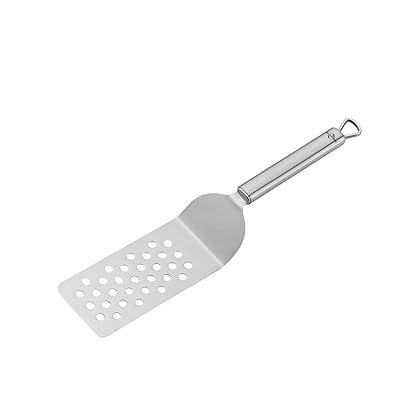 A 'Spoonula' is half spoon and half spatula, and this versatile style spatula is great for mixing, folding, serving and scraping. It's flexible for scraping and serving, but curved for mixing and folding.This mini spatula is designed specifically for scraping jars so you can easily spread jams or jellies, peanut butter, mayonnaise and other condiments.the Kuchenprofi Parma Slotted Turner in 18/10 Stainless Steel The small spatula fits easily into the jar to scoop it out and works wonderfully for spreading too. Great for scooping out every last drop of delicious jam, jelly and peanut butter.The lifted edges of the spoonula allow you to easily scrape the sides of your mixing bowl and scoop batter into cupcake pans or dollop icing onto your cake for frosting.All of the Wilton silicone spatulas are high-heat resistant, you can use them for making light and fluffy scrambled eggs because hey won't melt or scrape the pan.- A good assistant for whisking eggs, icing sugar mixture and melted chocolate fresh cream enable your household more easier and effective.- From beating a single egg to mixing a cake batter the sturdy and efficient classic whisk has multiple wires for adding volume and quickly smoothing lumps from mixtures.- This stainless steel whisk set can be very handy in any kitchen. Set includes 3 different sizes so you can pick the right whisk for the right task.- Hanging loop at the end of the handle makes it storage easily.Kuchenprofi Parma Slotted Turner in 18/10 Stainless Steel is best for youFounded in Solingen Germany by Artur Schmitz in 1923, the story of Kuchenprofi is one of dilligence, innovation and refinement. Early on, Kuchenprofi realized the need for affordable functional tools that make the kitchen more efficient and more enjoyable. The name of Kuchenprofi reflects strength, quality and functionality demanded by chefs around the world. Kuchenprofi made for professionals, now available to anyone passionate about cooking. When flipping burgers or flapjacks, lifting delicate fish fillets or serving home-baked pies, professional chef's prefer the slotted design of this Kuchenprofi Parma Turner. Holes ensure easy food release while allowing grease and oil to drain back into the pan for healthy, delicious eating. Ergonomically designed of high-grade 18/10 stainless steel that's as durable as it is beautiful. Dishwasher safe. 11-inch long.