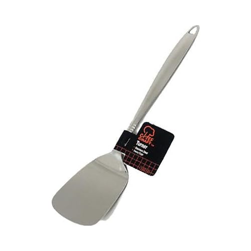 A 'Spoonula' is half spoon and half spatula, and this versatile style spatula is great for mixing, folding, serving and scraping. It's flexible for scraping and serving, but curved for mixing and folding.This mini spatula is designed specifically for scraping jars so you can easily spread jams or jellies, peanut butter, mayonnaise and other condiments.the Turner Stainless Steel Solid Spatula Flipper Food Lifter-Kitchen Tools & Gadgets The small spatula fits easily into the jar to scoop it out and works wonderfully for spreading too. Great for scooping out every last drop of delicious jam, jelly and peanut butter.The lifted edges of the spoonula allow you to easily scrape the sides of your mixing bowl and scoop batter into cupcake pans or dollop icing onto your cake for frosting.All of the Wilton silicone spatulas are high-heat resistant, you can use them for making light and fluffy scrambled eggs because hey won't melt or scrape the pan.- A good assistant for whisking eggs, icing sugar mixture and melted chocolate fresh cream enable your household more easier and effective.- From beating a single egg to mixing a cake batter the sturdy and efficient classic whisk has multiple wires for adding volume and quickly smoothing lumps from mixtures.- This stainless steel whisk set can be very handy in any kitchen. Set includes 3 different sizes so you can pick the right whisk for the right task.- Hanging loop at the end of the handle makes it storage easily.Turner Stainless Steel Solid Spatula Flipper Food Lifter-Kitchen Tools & Gadgets is best for youDESCRIPTION Chef Craft - Solid Turner/Spatula Kitchen Tools & Gadgets Chef Craft Solid Turner Utensil Heavy Gage Stainless Steel Handle Has Hole For Hanging When Not In Use Sturdy Construction Overall Length: 12.5' Blade Width: 3' x 3 3/4' Long