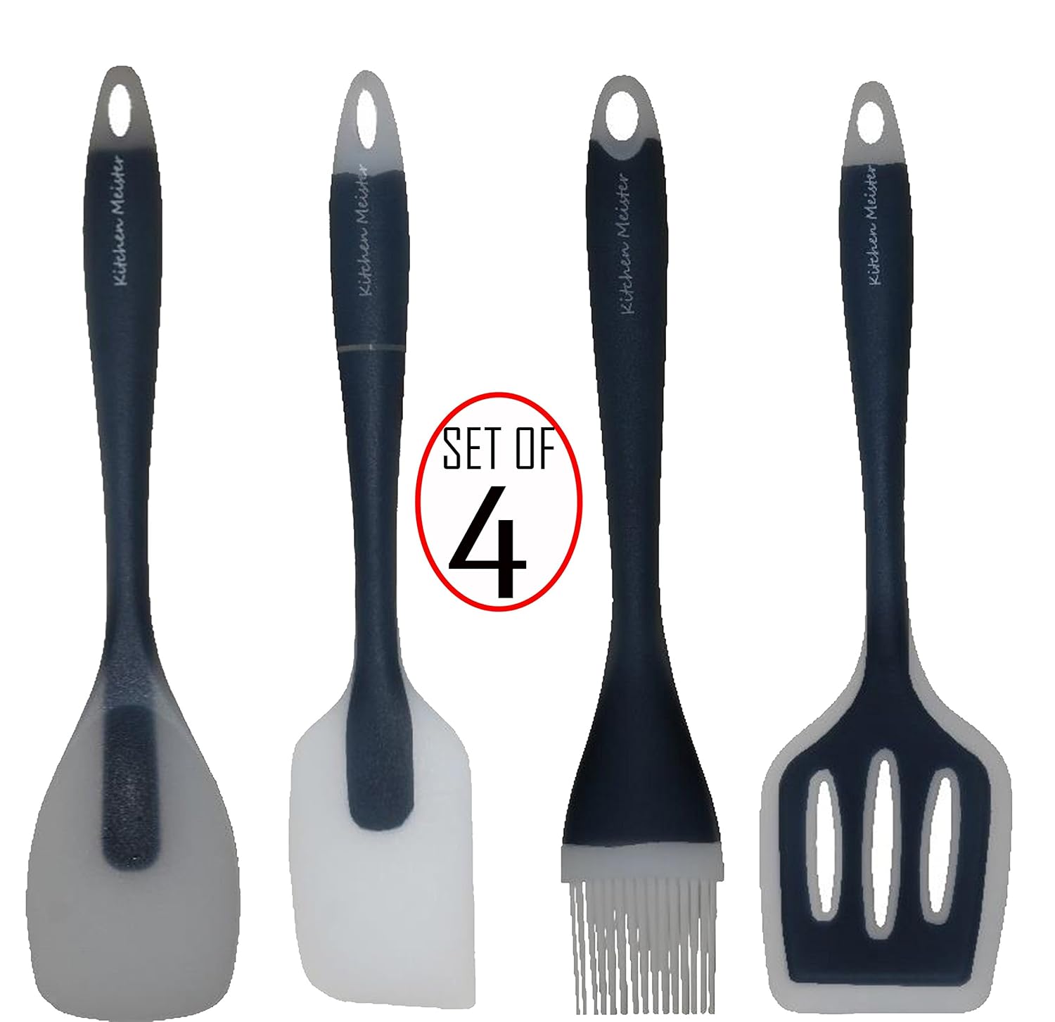 • The (4-piece) Black Kitchen Cooking Utensil Gadget Set- Made of One Piece Silicone. Includes; Spatula, Slotted Turner, Spoon, Pastry Brush.-11’’ is a