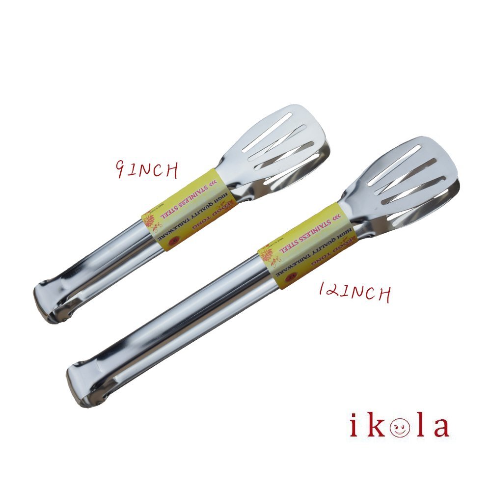 • The 2 Pack The size of the Kitchen Tongs Set 9-inch & 12-inch Salad &Grill Stainless Steel Serving Tongs perfect universal clamp is a
