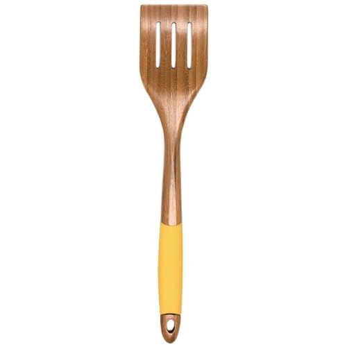 • The Lipper International Bamboo Slotted Spatula with Silicone Handle, Yellow is a