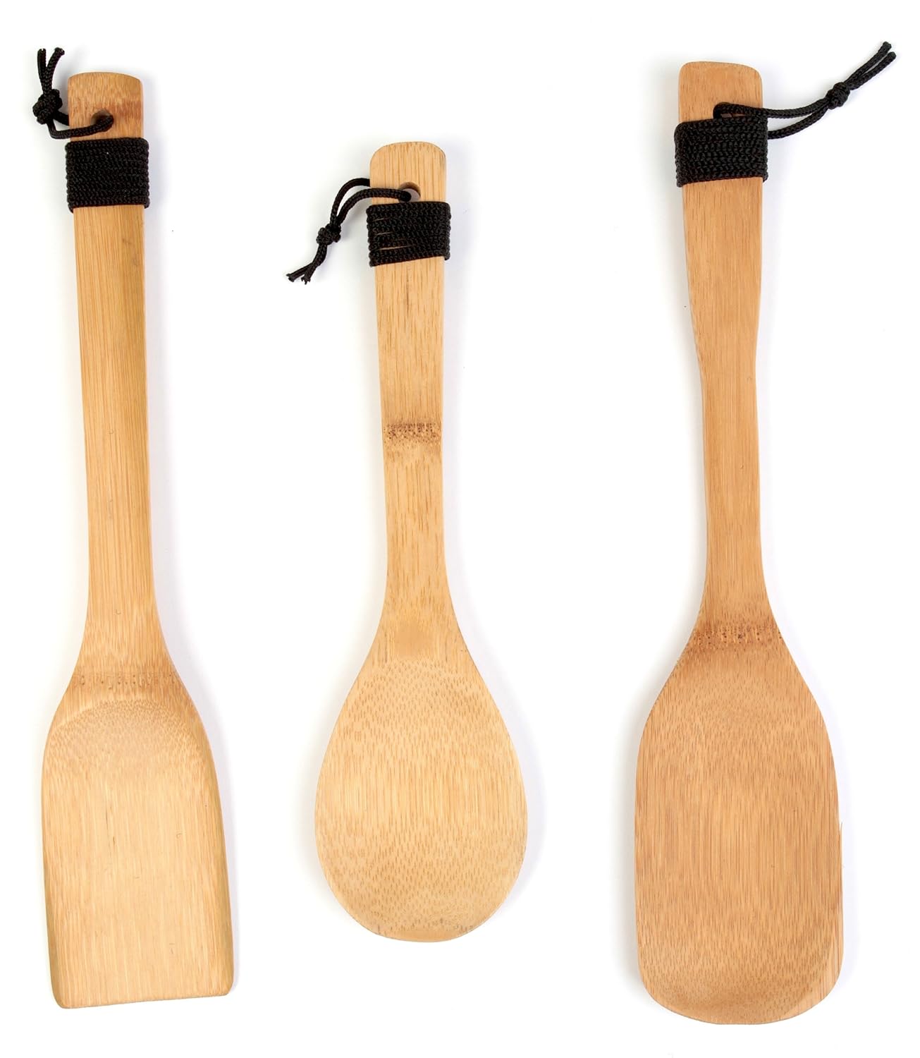• The Fujian Bamboo Stir Fry Cooking and Serving Utensil Set is a