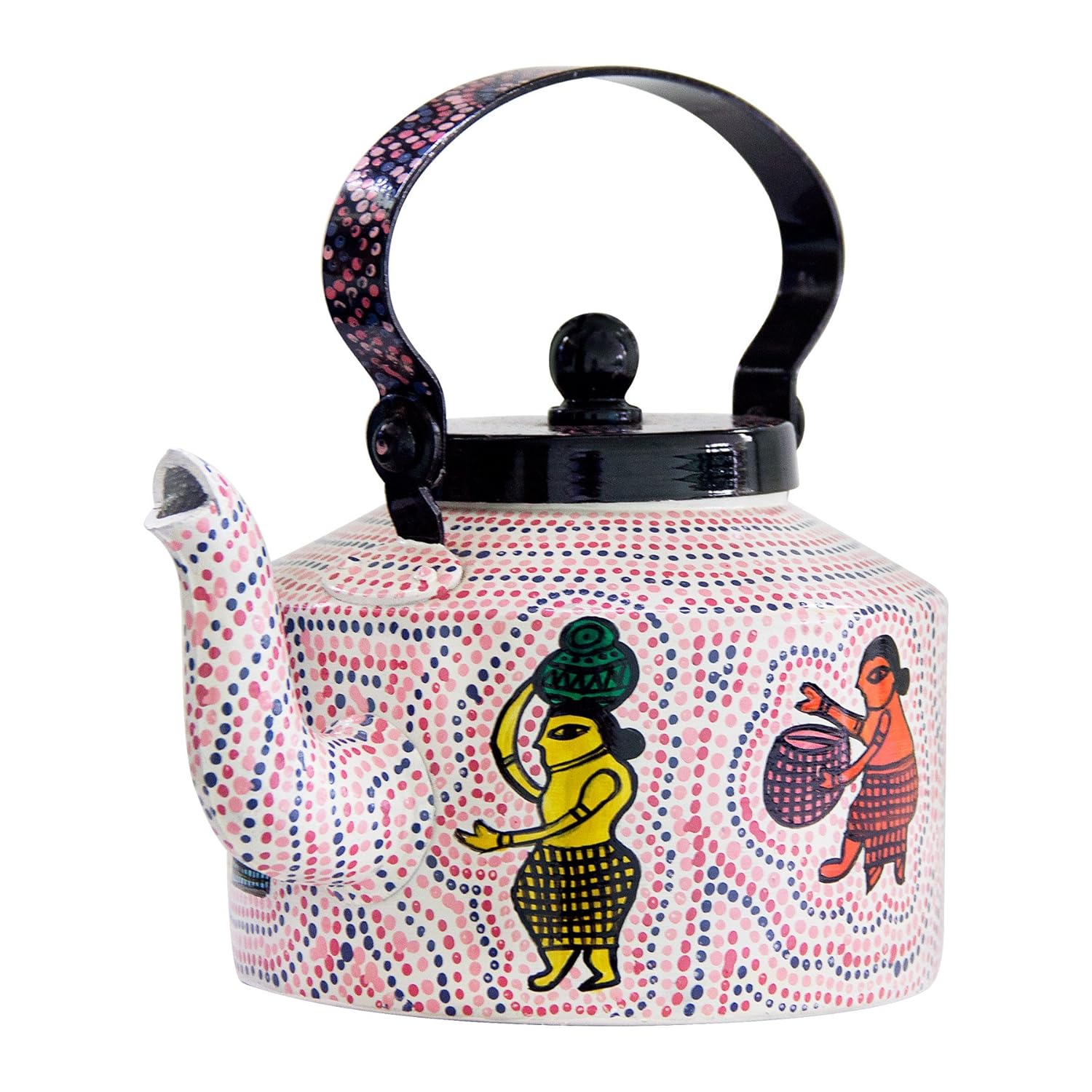 • The Pulpypapaya Indian Hand Painted Aluminium Afro Fiesta Tea Kettle Pot, Multicolor Traditional teapot/kettle Art Home and Garden Kitchen and Dining Serve Ware Tableware Coffee and Tea is a