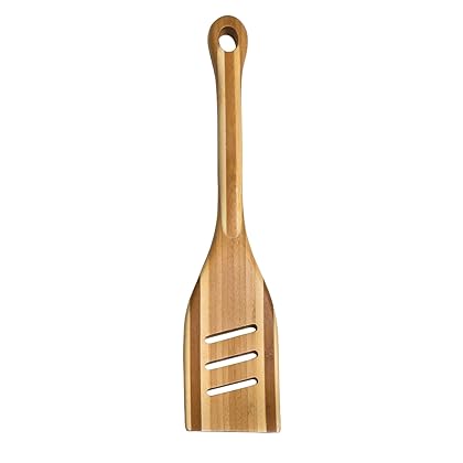 • The Lipper International Bamboo 2-Tone Slotted Spatula is a
