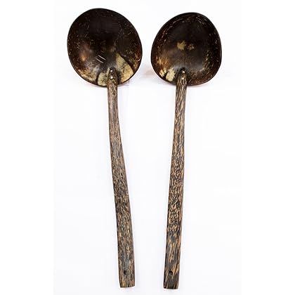 • The 12" Coconut Shell Long Handle Wooden Kitchen Cooking Ladle Spoons Utensils Set of 2 is a