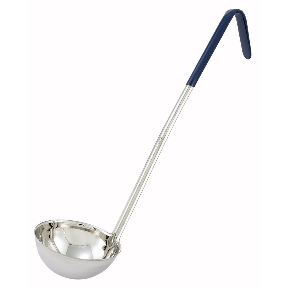 • The Winco LDC-8 Stainless Steel Ladle with Blue Handle, 8-Ounce is a