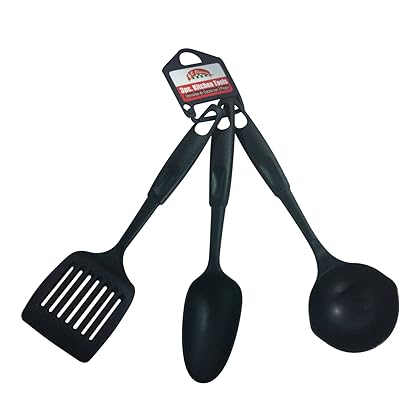 Designed with thicker steel, premium silicone and a smoother locking action – these silicone kitchen tongs are built to last! • 1 x 9-Inch Tongs: 9" Handles (10" including lock) • 1 x 12-Inch Tongs: 12" Handles (13" including lock) • Heat resistant silicone tips up to 480°F • 100% FDA Grade, BPA Free silicone • Non-Stick friendly tongs - perfect for both non-stick cookware, the grill, or as salad tongs or serving tongs • Stain and odor resistant • Hygienic silicone molded onto scalloped steel heads so they do not come apart and nowhere for bacteria to grow • Stiff silicone heads for firm grip and control • 1.0mm extra thick stainless steel for added strength and durability • Sliding Lock for convenient storage • Smooth-Glide Locking tongs brackets for a smoother locking action that will last years • Ergonomically designed silicone grips on the handles • Dishwasher safethe Benecasa 3-Piece Kitchen Utensil Set Get back to your roots with the oxo good grips wooden tools. Made of solid, one-piece beech wood, these sturdy wooden tools are comfortable, durable and versatile. The line includes large, medium and small spoons, slotted spoon, corner spoon, sauté paddle and turner. The broad, deep spoon heads are designed to scoop generous portions of your favorite sauces and foods. Their distinctive straight-sided shape allows better reach along the walls and into the corners of your cookware. Use the sauté paddle and turner to flip, stir, scrape and chop your food in your pan. A natural oil finish coats and protects the wood. Safe for non-stick cookware and comfortable to hold, the wooden tools are handy for a host of cooking tasks. Hand wash onlyBenecasa 3-Piece Kitchen Utensil Set is best for you3 pc Nylon Kitchen Tools Set; Includes:1 Ladle, 1 Spoon, 1 Slotted Turner; Black Nylon; Tools are safe to use on all cookware especially non stick; Dishwasher safe; Comfortable grips; Heat Resistant.