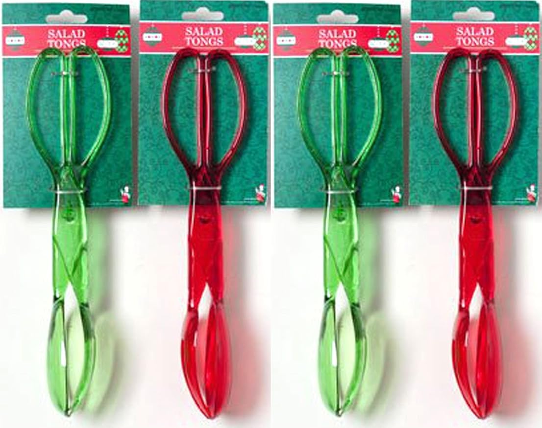 • The Salad Tongs W/ Red & Green Transparent Tints 11" Plastic Tongs (4 Pack) - Separates Into Serving Spoon & Serving Fork is a