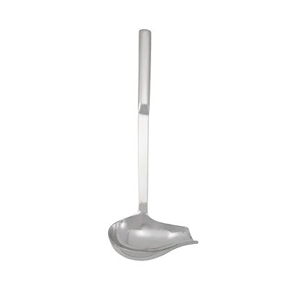 FortheChef's Hollow Handle 2 Oz. Stainless Steel Spout Ladle is best for youMaintain clean countertops when pouring punches, sauces, soups, and more with this elegant spout ladle. It features a strong yet lightweight hollow handle and a lip-pour spout that holds a 2-ounce capacity of liquid for your convenience. A sturdy and seamless serving piece, it is constructed from one piece of stainless steel with a brushed-satin finish, producing an air of refinement as you present each of your guests with a delicious portion of their meal.