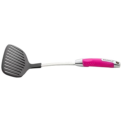 Zeroll Ussentials 8503PF Nylon Wide Slotted Turner, Pink Flamingo is best for youAre you the kind of cook that favors extra large portions? The Ussentials Large Slotted Turner is the ideal tool for you. It features a larger scale heat resistant head with slots that allow unwanted liquid to drain from food and a thin edge that swiftly slides underneath food. Despite its larger size, a soft comfortable no slip grip makes flipping food easy and minimizes wrist strain. Afterword, just place the turner in the dishwasher for an easy clean up routine.