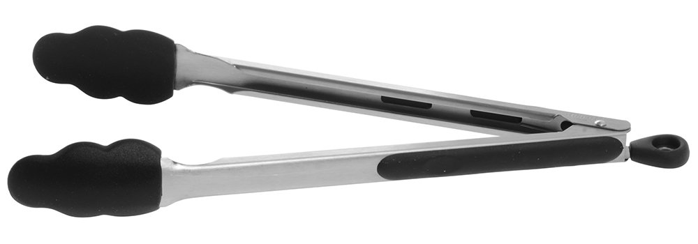 Stainless Steel 12" Tongs with Non-slip Silicone Tips, set of 2 is best for youStainless steel tongs lock for convenient stowage. Soft black comfort grip. Silicone tips are heat resistant and help to protect non-stick cook wear.