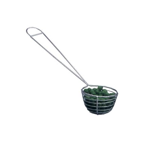 WIN-WARE Stainless Steel Wire Basket Pea Scoop Ladle Skimmer / Vegetable Serving Spoon (50ml) is best for youStainless steel. Drains a portion at a time.