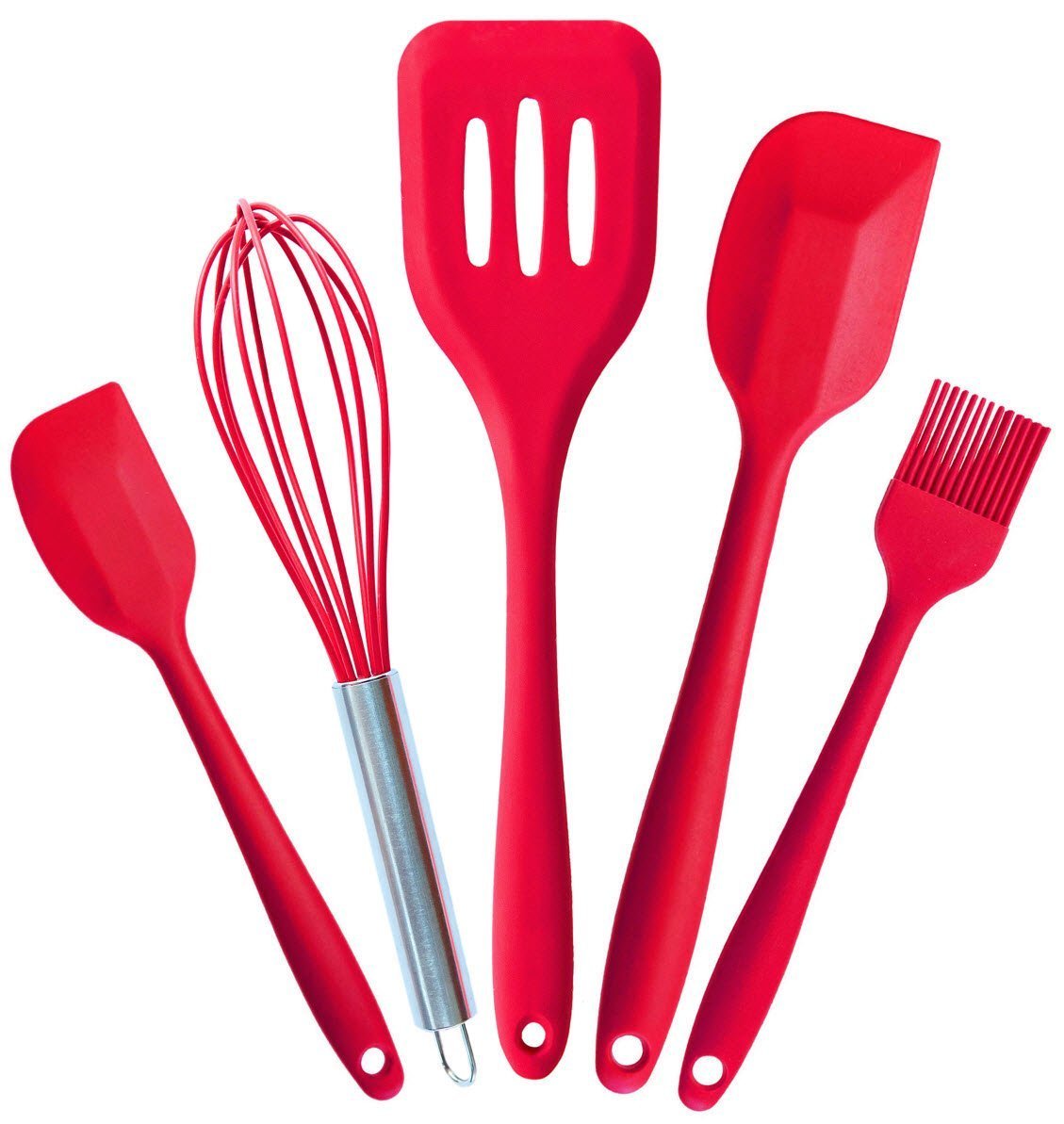 Acevan 5 Piece Premium Silicone Kitchen Baking Set - Spatulas, Spoons & Turner - Heat Resistant Cooking Utensil,Red best Cooking Utensils