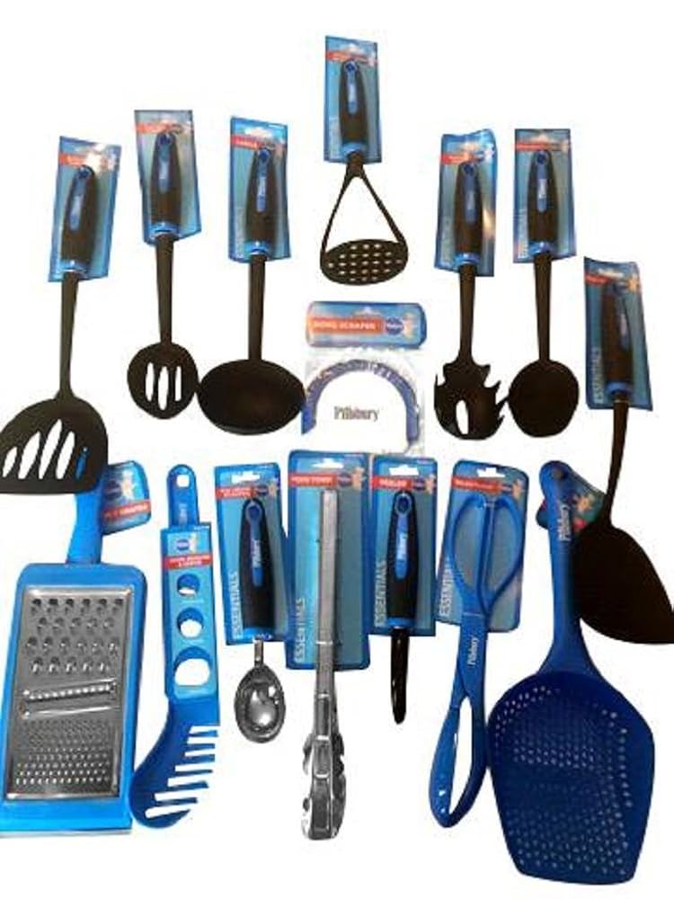 Pillsbury Cooking Utensil 15pc Bundle is best for youPillsbury Cooking Utensil 15pc Bundle Great Cooking Utensil Bundle for The Home Includes all of the following 15 items: Ladle, Salad Tongs, Bowl Scraper, Slotted and Solid Turner (spatula), Solid and Slotted Spoon, Pasta Measure & Server, Food Tongs, Potato Masher, Peeler, Ice Cream Scooper, Spaghetti Server, Colander Scoop, 3-N-1 Grater