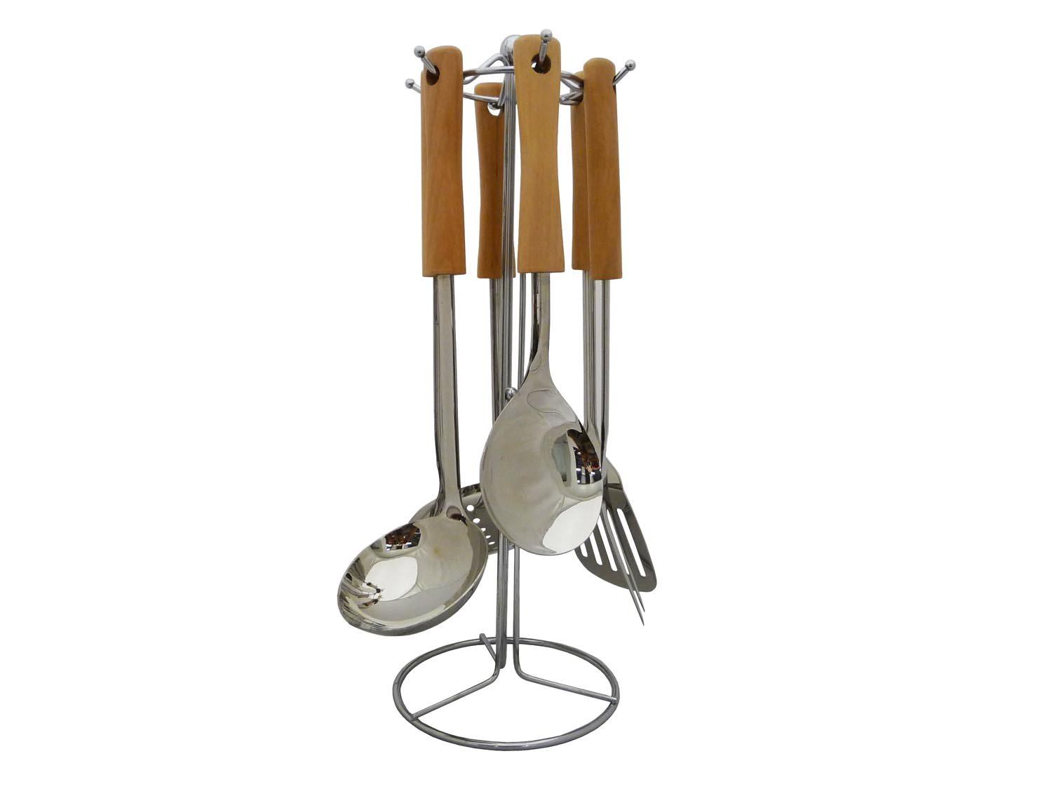 CONCORD 7 Pcs Stainless Steel Bamboo Kitchen Tool Utensils Spatula Skimmer Set with Stand best Cooking Utensils