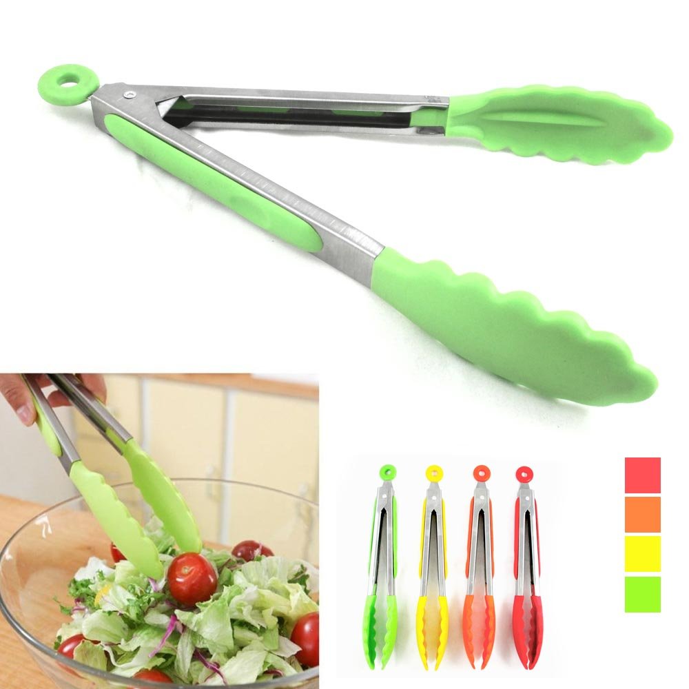 2 Silicone Tipped Tongs Turner Kitchen Utensil Cook Serve Stainless Steel New ! is best for you2 Brand New Silicone Tipped Tongs Turner Kitchen Utensil Cook Serve Stainless Steel Assorted Colors ! *Available Colors: Red, Orange, Yellow, Green - shipped randomly. These long modern silicone locking tongs are made with stainless steel and colored silicone accents. These cooking tongs provide great control when turning, serving and transferring foods. They combine the convenience of heat resistant silicone tips with the durability and longevity of stainless steel. The colorful silicone claws and contoured handles make it so easy to pick up hot things, cold things and messy things. Locking in the closed position makes these colorful tongs easy to store. Safe for non-stick cookware and perfect for not scratching your pots and pans. Measures: 11' (overall length), 9.5' (end of handle to tip)