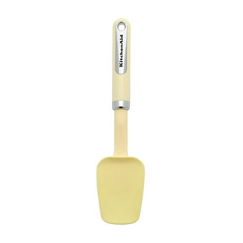 KitchenAid Silicone Spoon Spatula, Yellow is best for youWith a nice long handle and a curved flexible head you'll be able to scrape and scoop batter or other ingredients from bowls and pots. Easy to clean, comfy to use, heat-resistant, and coordinated to match your black KitchenAid standmixer, now this is one heck of a spatula!