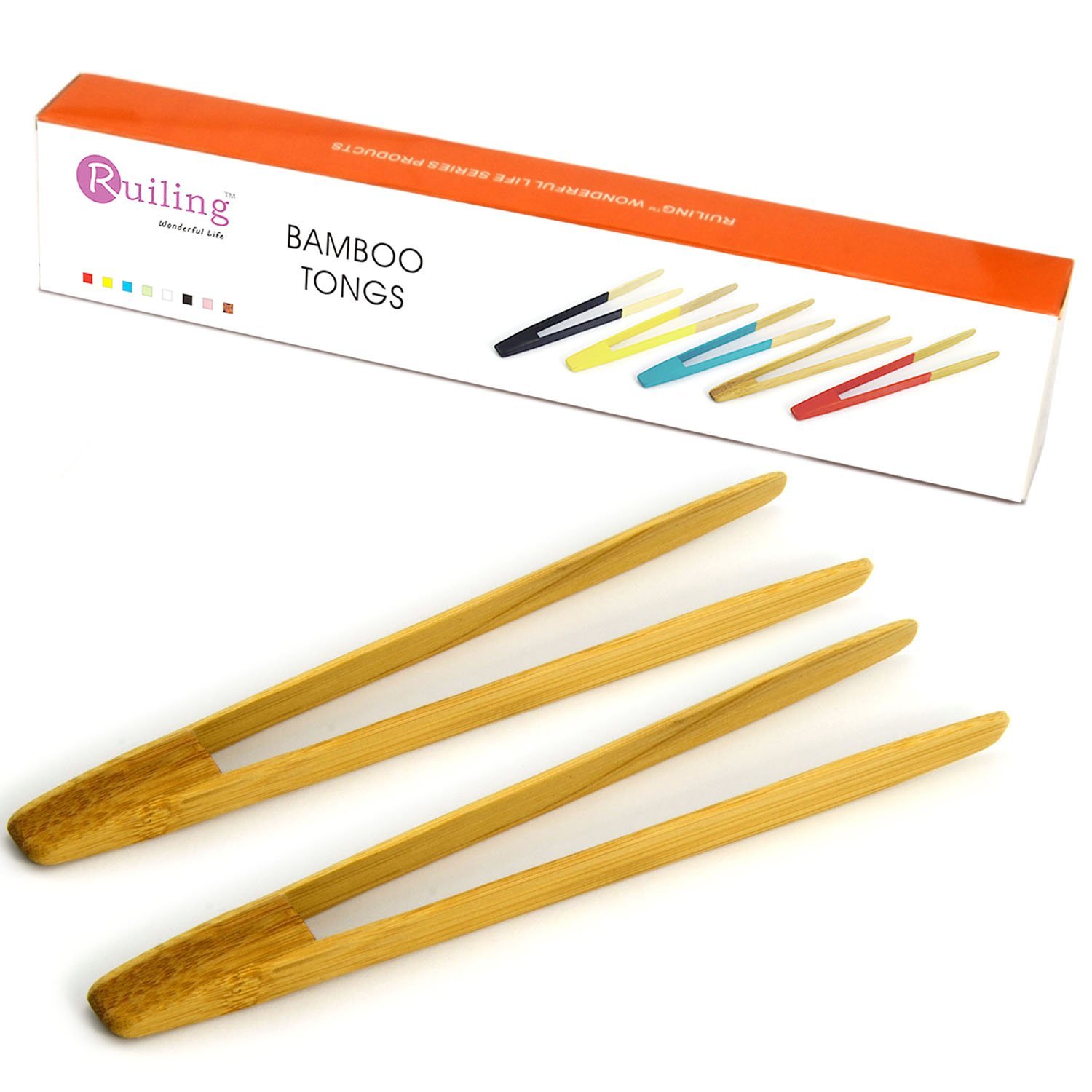 • The RuiLing Long Grip 2-Pack 9.5-Inch Natural Bamboo Kitchen Tongs Toast Tongs. is a