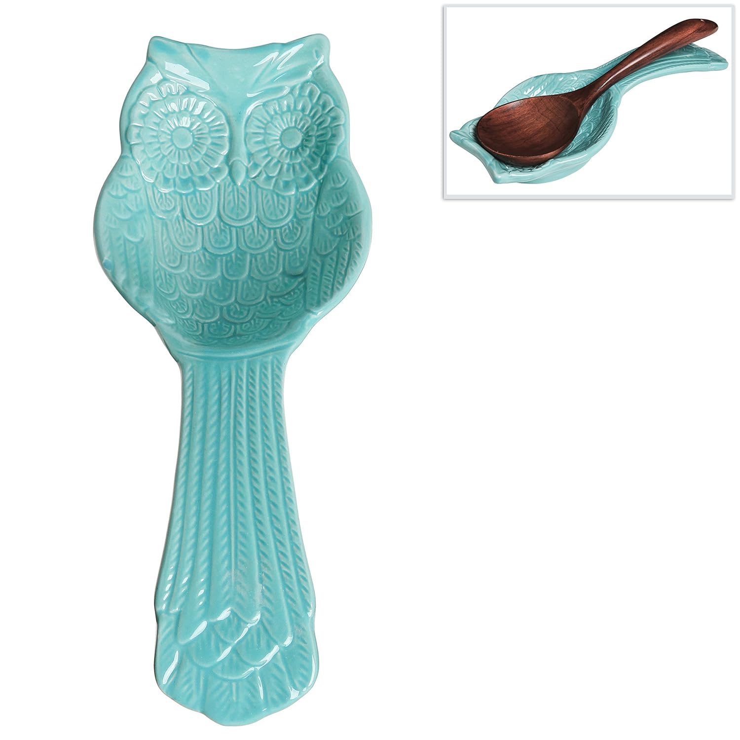 • The MyGift Aqua Blue Ceramic Owl Cooking Spoon Rest / Ladle Holder is a