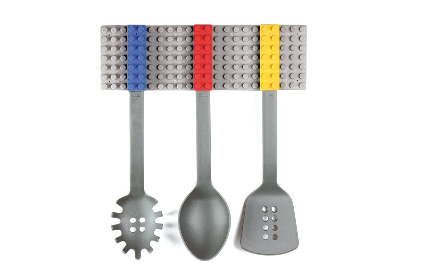 • The Kitchen Utensil Set And Wall Mount - Building Blocks Themed Spoon, Pasta Drainer & Spatula is a