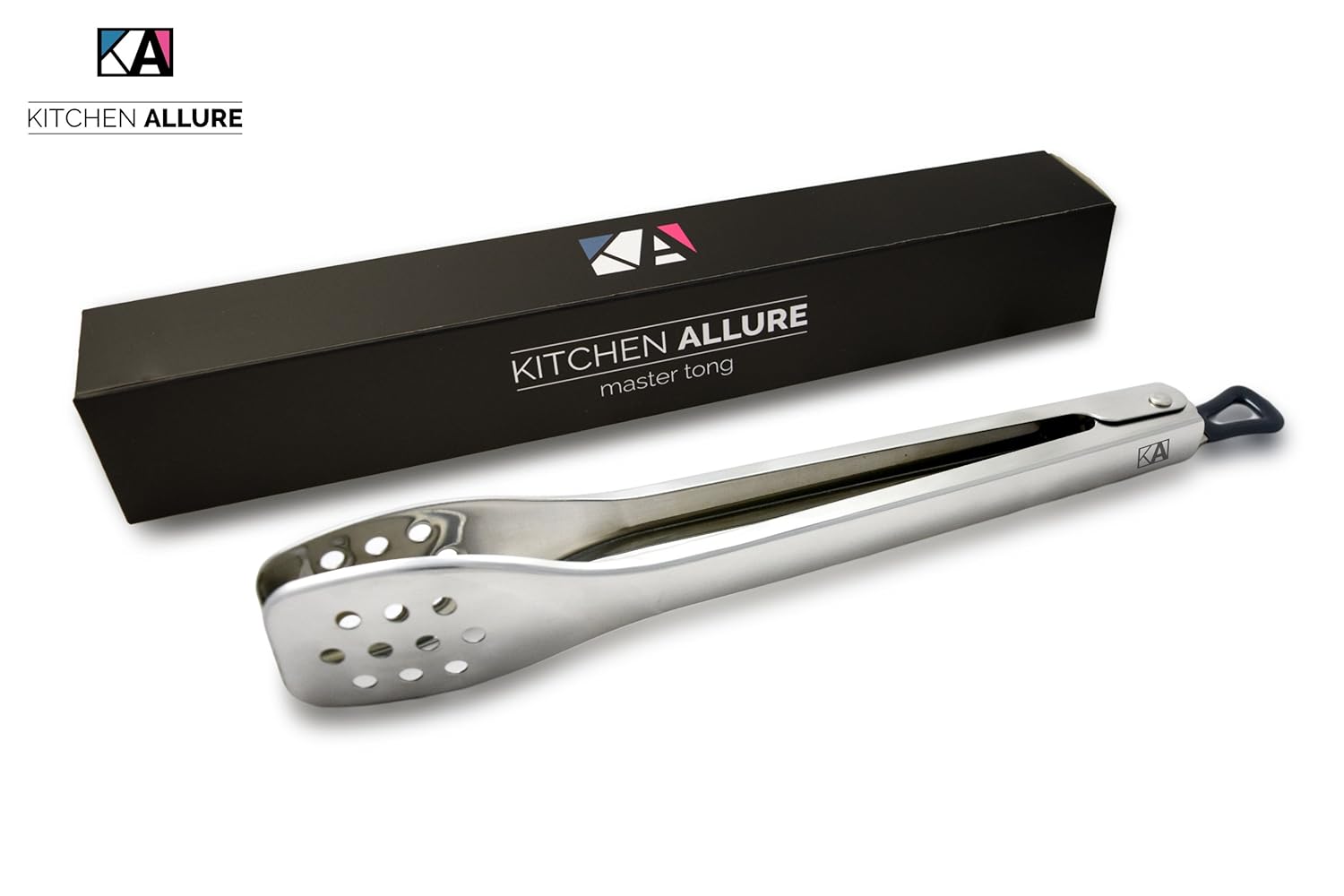 • The 12 inch Stainless Steel Locking Tong - Frying Tong - Cooking Tong - BBQ Grill Tong - Easy Salad Lifting - Kitchen Allure's Master Tong is a