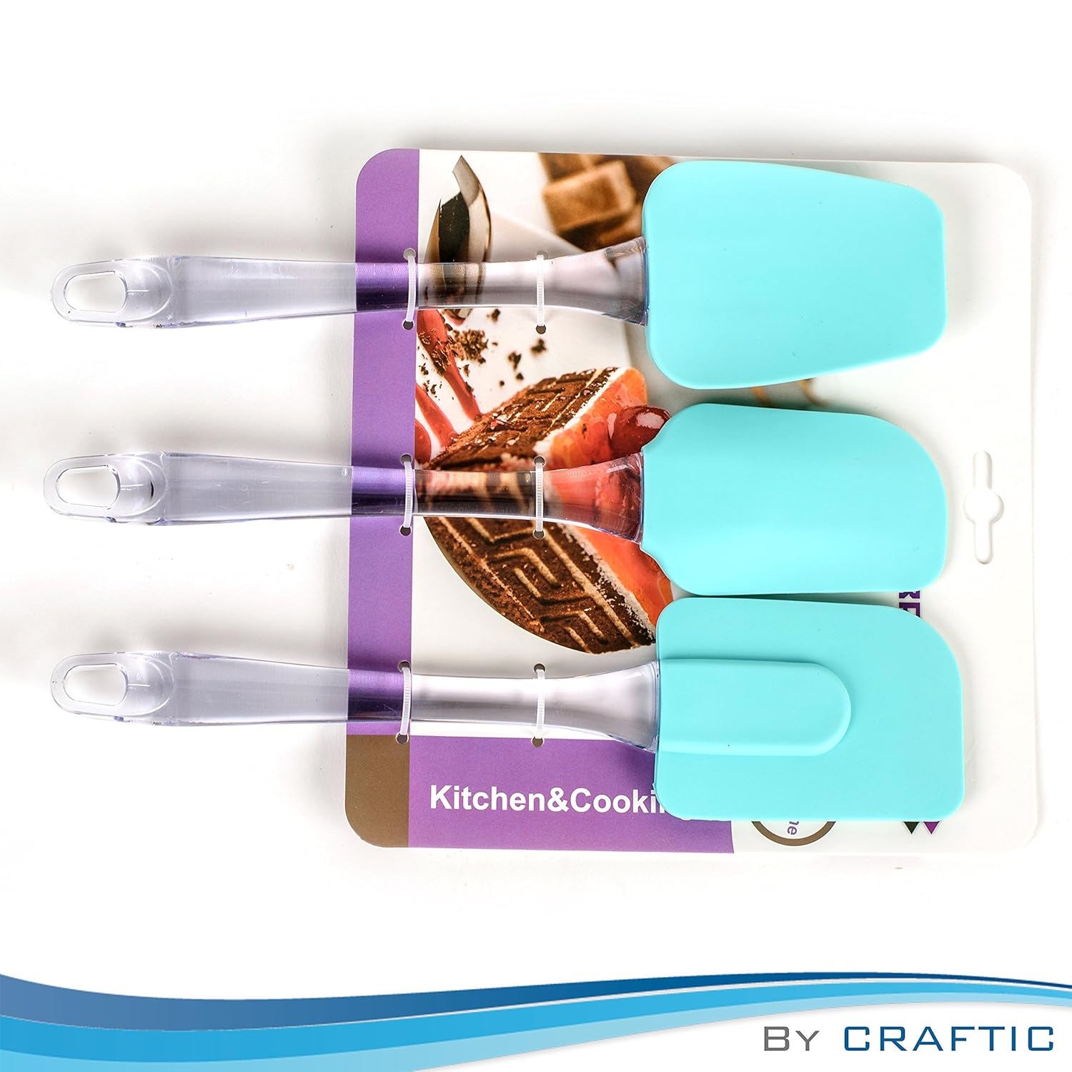 Perfect for any kitchen, this 3-piece silicone whisk set will help you with all your cooking needs. They are non-stick and will make your life much easier as once you are done with cooking you can throw them in the dishwasher for easy cleaning every time. Included in this set Blue Whisk: 12-inch, Red Whisk: 10-inch,Green Whisk: 8.5-inch, 100% Lifetime Money-Back Guarantee. Don't settle for an inferior whisk set when you can choose the best set of 3 whisks selling today. Three sizes allow for you to cook a variety of meals with ease. The stainless steel ends allow for easy hanging on any hook in your kitchen, allowing for easy storage.the 3-Piece Silicone Spatula Set (Blue) - Heat-Resistant, Non-Stick, Dishwasher-Safe These super durable silicone spatulas will quickly become your go-to tools for mixing, folding, scraping, cooking and even serving. High-heat resistant silicone heads (up to 500 degrees), so they're not just for mixing.The silicone head is firm enough makes it easily to fold dough, yet flexible enough for making fluffy scrambled eggs.The clear acrylic handle is hourglass shaped to fit comfortably in your hand. Silicone head detaches for easy cleaning and both pieces are dishwasher safe. Plus, they're stain-resistant to stay looking like new longer.This all-purpose spatula is perfect for mixing batter, folding dough and scraping the mixing bowl. It's also commonly used to make fluffy and delicious scrambled eggs without damaging the pan.3-Piece Silicone Spatula Set (Blue) - Heat-Resistant, Non-Stick, Dishwasher-Safe is best for youColor:Blue BEST QUALITY BAKING AND COOKING SPATULA SET The Craftic 3 Piece Spatula Set is made with high quality silicone and polyurethane for maximum usability, durability, and effectiveness. Each piece is non-stick, making use and then clean up a breeze. The materials are also designed to withstand a broad range of temperatures, from -38 degrees F to 572 degrees F, making it also freezer safe when needed. The quality of the materials also makes each piece dishwasher safe. ★ Quality silicone and plastic material for high durability and simple cleaning ★ Designed to withstand extreme temperatures ★ Freezer safe★ Dishwasher safe Click on the Add to Cart button now to get the best silicone spatula set on the market today!
